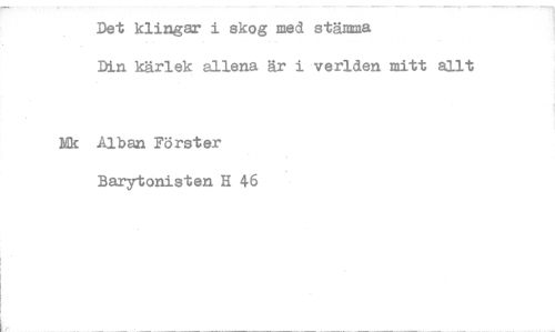 //// Det klingar i skog med stämaa //// Din kärlek allena är i verlden mitt allt //// Nk Alban Förster Barytond.sten H 46 ////