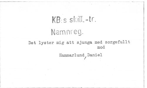 //// KB:s ski[1.-tr. //// Namnreg. //// Det lyster mig att sjunga med sorgefullt //// mod //// Hammarlund Daniel ////
