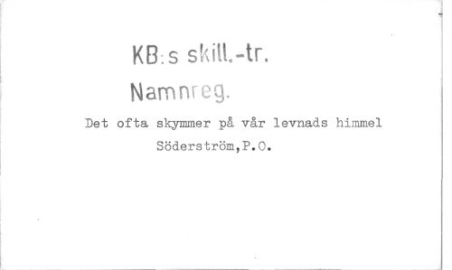 //// KB.s //// Narnnveg. //// Det ofta skymmer på vår levnads himmel Söderström, P.O. ////