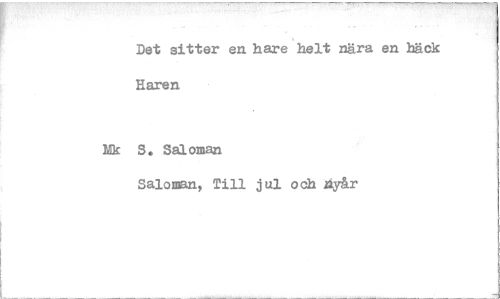 //// Det sitter en hare helt nära en häck Haren //// Ik 5. Salomon //// Salomon, Till jul och nyår ////