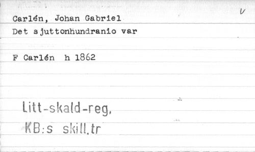 //// Carl4n, Johan Gabriel Det sjuttonhundranio var //// F Carldn h 1862 //// titt-skald -reg, //// KB:s ////