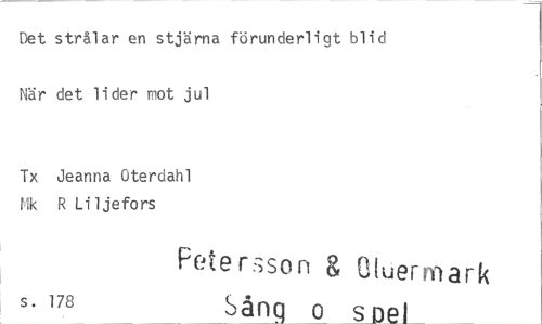 //// Det strålar en stjärna förunderligt blid //// När det lider mot jul //// Tx Jeanna Oterdahl tik R Liljefors //// Fete N;son Cluermark //// s. 178 Sång o s ////