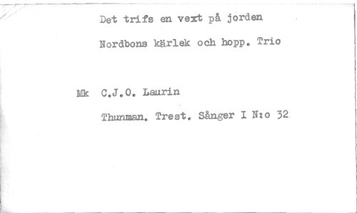 //// Det trifs en vext på jorden Nordbons kärlek och hopp. Trio //// Mic C.J.O. Laurin //// Thunman. Trest. Sånger I Nto 32 ////