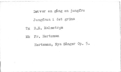 //// Dtftvar en gång en jungfru //// Jungfrun i det gröna //// Tx B.E. Malmström //// Mk Fr. Hertzman //// Hertzroant Nya Sånger Op. 5. ////