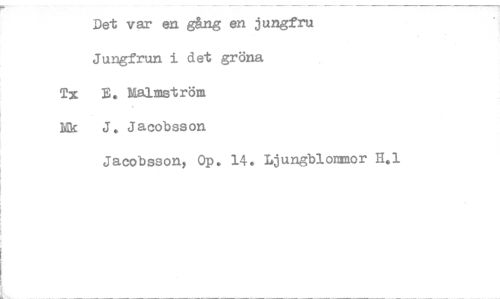 //// Det var en gång en jungfru //// Jungfrun i det gröna //// Tx E. Malmström //// Mat J. Jacobsson //// Jacobsson, Op. 14. Ljungblommor H.1 ////