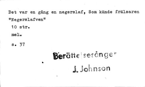 //// Det var en gång en negerslafs Som kände frälsaren "Negerslafven" //// 10 str. //// mel_. //// 5. 37 //// . gerätt€ sefånge- //// ohnson ////