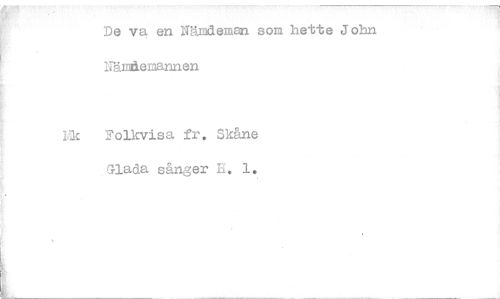 //// De va en Nändeman son hette John 17ändenannen //// 2olkvisa fr. Skåne Glada sånger L. 1. ////