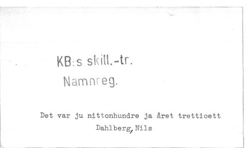 //// KB:s skitt.-tr. //// Namnreg. //// Det var ju nittonhundre ja året trettioett DahlbergINils ////
