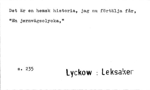 //// Det är en hemsk historia, jag nu förtälja får, "En jernvägsolyoka," //// s. 235 Lyckow : leksiuer ////
