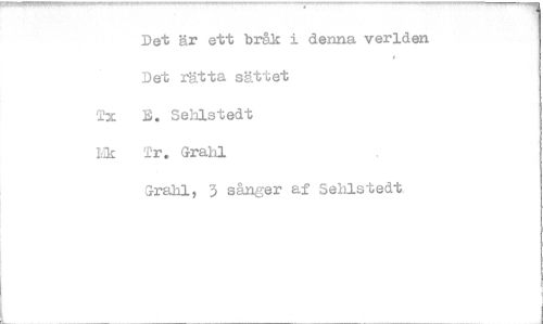 //// Det är ett bråk i denna verlden Det rätta sättet Tx E. Sehlstedt //// LIc Tr. Graial //// Grahl, 3 sånger af Sehlstedt ////