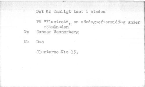 //// Det är fasligt tomt i staden //// På "Flustret+ a en söndagseftermiddag under rötm;=maden //// Tx Gunnar W ennerb er g //// Iklle D:o //// Glun.tarne N:o 15. ////