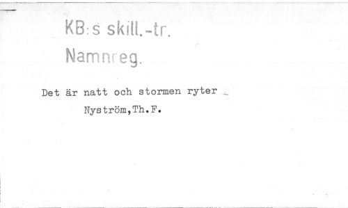 //// KBs skiti.-tr. //// Namnreg. //// Det är natt och stormen ryter Nyström,Th.F. ////