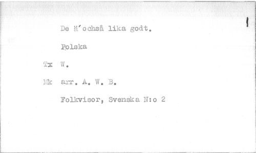 //// De K'ochsät lika godt. //// Polska //// W. //// ik arr. A, W, B. //// Folkvisor, Svenska N:o 2 ////
