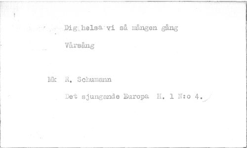 //// Dig, hetsa vi så mången gång Vårsång //// D R. Sehum2nn //// Det sjungande Europa H. 1 N:o //// L. ////