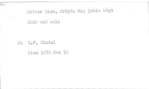 //// Dotter Zion, fröjda dig jubla högt Chör med solo //// Lic G.F. Händel Zion 1870 11:o 39 ////