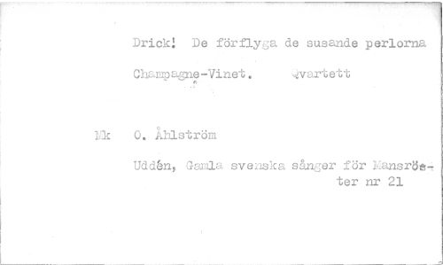 //// Drick! De förflyta de susande perlorna //// Champagne-Vinet. :kvartett //// U 0. Åhlström //// Udden, Gamla svenska sånger för hansröe4. //// ter nr 21 ////