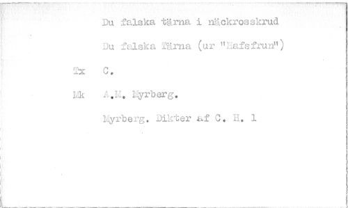 //// Du falska tårna i näckrosskrud Du falska Tärna (ur "LafsfrunY0 2x C. //// Lic Lyrberg. //// Myrberg. Dikter 4J.f 0. H. 1 //// L ////
