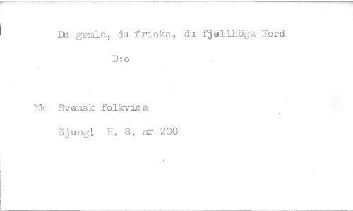 //// Du garala, du friska, du fjellhöga Nord D:o //// Tik Svensk folkvisa Sjung: II. 8. nr 200 ////
