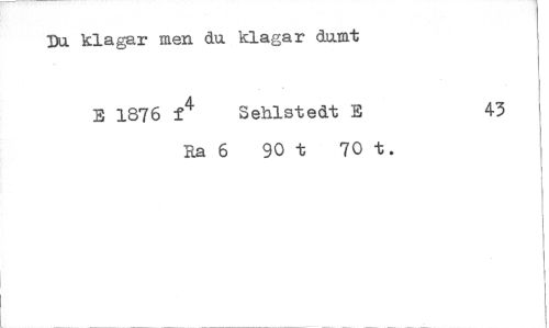 //// Du klagar men du klagar dumt //// E 1876 f4 Sehlstedt E 43 //// Ra 6 90t 70 t . ////