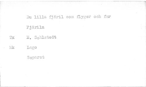 //// Du lilla fjMril som flyger och far Fjäriln //// B. Sehlstedt //// • lat Lago //// Separat ////