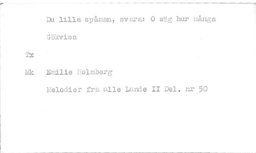 //// Du lilla spåman, svara: 0 sög hur många //// Gökvisa //// Tx //// Vlk Emilie Holmberg //// Melodier fra alle Lande II Del, nr 50 ////