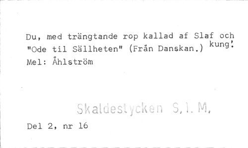 //// Du, med trängtande rop kallad af Slaf och "Ode til Sällheten" (Från Danskan.) kung: Mel: Åhlström //// f,a[cies: ck //// Del 2, nr 16 ////