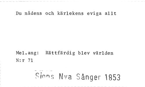 //// Du nådens och kärlekens eviga allt //// Mel.ang: Rättfärdig blev världen N:r 71 //// 9inns Nya Sånger 1853 ////
