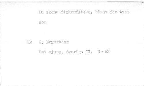 //// Du sköna fiskarflicka, båten för tyst Korn //// Tfc G. Meyerbeer //// Det sjung. SverigeII. Ur 62 ////