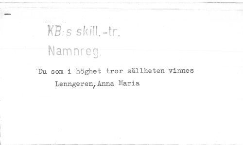 //// KB:s skiq,-tr //// Narnnreg //// Du som i höghet tror sällheten vinnes LenngerenfAnna Maria ////
