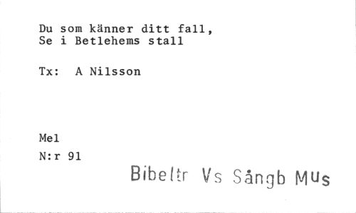 //// Du som känner ditt fall, Se i Betlehems stall //// Tx: A Nilsson //// Mel //// N:r 91 //// Bibelgir Vs Sångb Mus ////