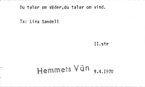 //// Du talar om väder,du talar om vind. //// Tx: Lina Sandell //// II.str //// Hemmets Viln 9.4.1970 ////