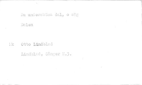 //// Du undersköna dal, o sUg Dalen //// Lic Otto Lindblad //// Lindblad, nwer 11.3. ////