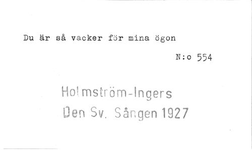 //// Du är så vacker för mina ögon //// N: o 554 //// Ho! mströrn-Ingers //// Oen Sv. Sången 1927 ////