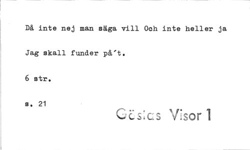 //// Då inte nej man säga vill Och inte heller ja Jag skall funder på't. //// 6 str. s. 21 //// O:c:s VSOr ////