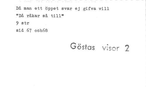 //// Då man ett öppet svar ej gifva vill "Då råkar så till" //// 9 str //// sid 67 och68 //// Göstas \/;r ////