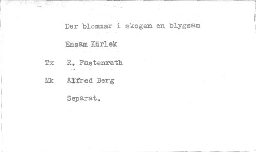 //// Der blommar i skogen en blygsam //// Ensam Kärlek //// Tx R. Fastenrath //// isk Alfred Berg //// Separat. ////