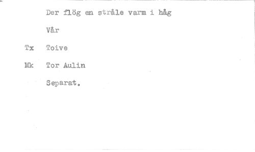 //// Der flög en stråle varm i håg //// Vår //// Tx Toive //// Mk Tor Aulin //// separat, ////