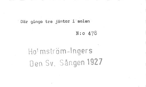 //// Där gingo tre jäntor i solen //// N:o 478 //// niströrn-Ingers //// Den Sv. Sången 1927 ////