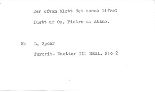 //// Der ottan blott det sanna lifvet Duett ur Op. Pietro di Abano. //// Mk L. Spohr //// Favorit- Duetter III Saml. N:o 2 ////