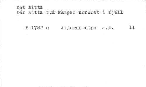//// Det sitta //// Där sitta två kämpar tordost i fjäll //// E 1782 o Stjernstolpe J.L. 11 ////