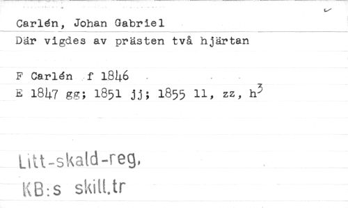 //// Carldn, Johan Gabriel //// Där vigdes av prästen två hjärtan //// F Carldn f 1846 //// E 1847 gg; 1851 jj; 1855 11, zz, //// Lift-skald-reg, //// KB:s ////