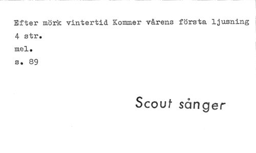 //// Efter mörk vintertid Kommer vårens första ljusning //// 4 str. mel. //// s. 89 //// Scout sånger ////