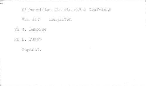 //// Bj hemgiften din min sköna Crefvinna "2a dat" ilengiften //// Ti< G. Lemoine //// kk L. Puzet //// Separat. ////