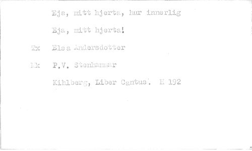 //// 2j a, nitt hi arta, hur innerlig Eja , mitt 'aj erta; //// Tx Els a .;.nfiersdotter //// Stermar //// Kihlber,s;, Liber C, ant us E 192 ////