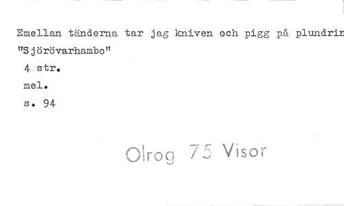 //// Emellan tänderna tar jag kniven och pigg på plundrir "Sjörövarhambo" //// 4 str. //// mel. //// s. 94 //// 0 roa 75 Visor ////