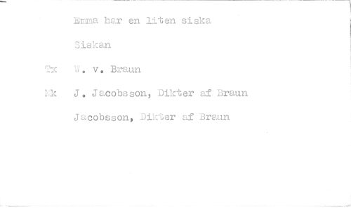 //// Emma har en liten siska //// Siskan //// 211 'å. y, Braun //// }J J. Jacobsson, Dikter af Braun //// Jacobsson, Dikter af Braun ////