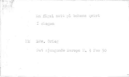 //// En fågel satt på bokens qvist I skogen //// Ek Edv. Grieg //// Det sjungmde Europa li. 4 N:o 50 ////