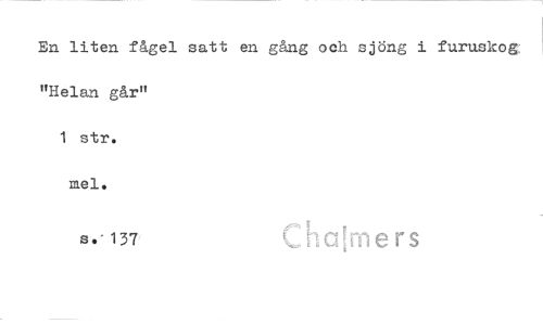 //// En liten fågel satt en gång och sjöng i furuskog: "Helan går" //// 1 str. //// mel. //// s.^137- s a n e r s ////