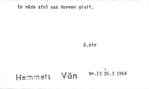 //// En nåda stol oss Herren givit. //// 6.str //// Hemmets Vän Nr.I3 26.3 1964 ////