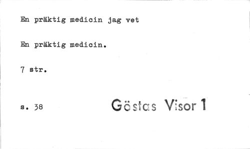 //// En präktig medicin jag vet En präktig medicin. //// 7 str. //// s. 38 Göstes Vsor 1 ////